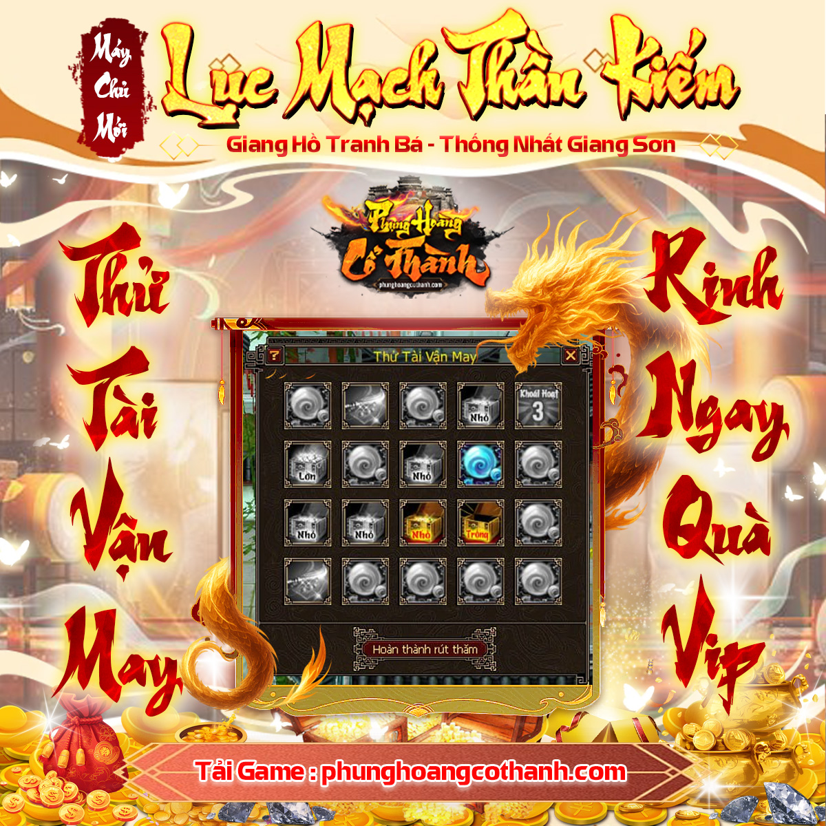 ? Lưu ý: Chọn 3 ô bất kỳ sau đó ấn Hoàn Thành Rút Thăm trước rồi mới ấn Nhận Lĩnh Phần Thưởng Khoái Hoạt Tam.